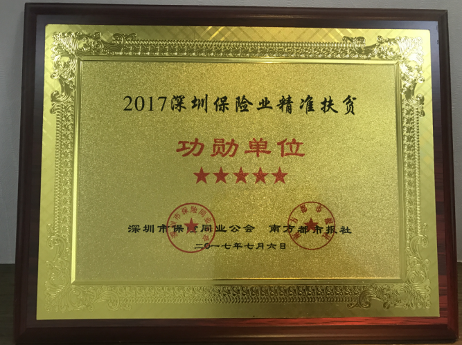 7月6日,阳光人寿深圳分公司负责人郑晓星参加了“深圳保险业公益高峰论坛会”,阳光人寿深圳分公司荣获“2017深圳保险精准扶贫功勋单位”称号,并由深圳保监局长张辉烨亲自颁发奖牌。阳光人寿深圳分公司通过参与“竹塘村”扶贫项目,再次提升了阳光品牌在当地的知名度,塑造了良好的公益形象,在深圳保险业树立起公益标杆,受到行业、人民群众的广泛赞誉。