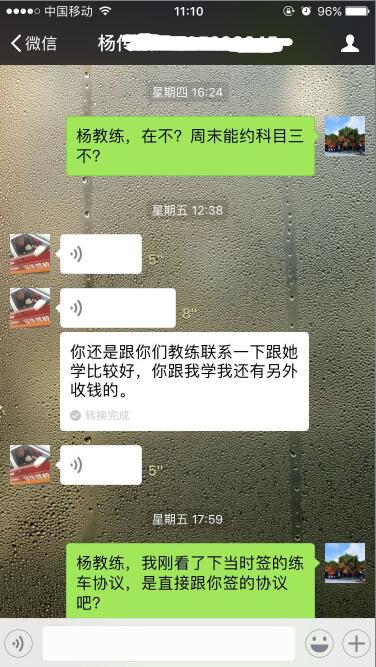 2017年8月,陈先生与宝华驾校教练员杨某银签《驾驶员培训合同》,并支付了全款培训费用8000元(见微信截图)。2018年1月,陈先生通过科目二考试后,与杨某预约科目三考试。杨某提出要再次收费(详见聊天记录)。陈先生与杨某沟通无效后,向该教练挂靠的宝华驾校投诉维权,宝华驾校反应“其一,驾校不接收学员不与学员签合同;其二,教练的投诉先调查了解”,后续再无反馈。