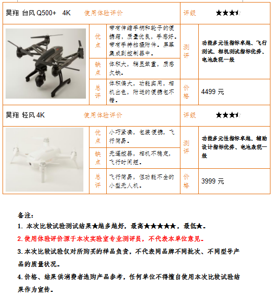 御Mavic Pro”和“精灵3标准版Phantom 3 Standard”,充电时间较短,续航时间较长,表现较好,获评3.5分。