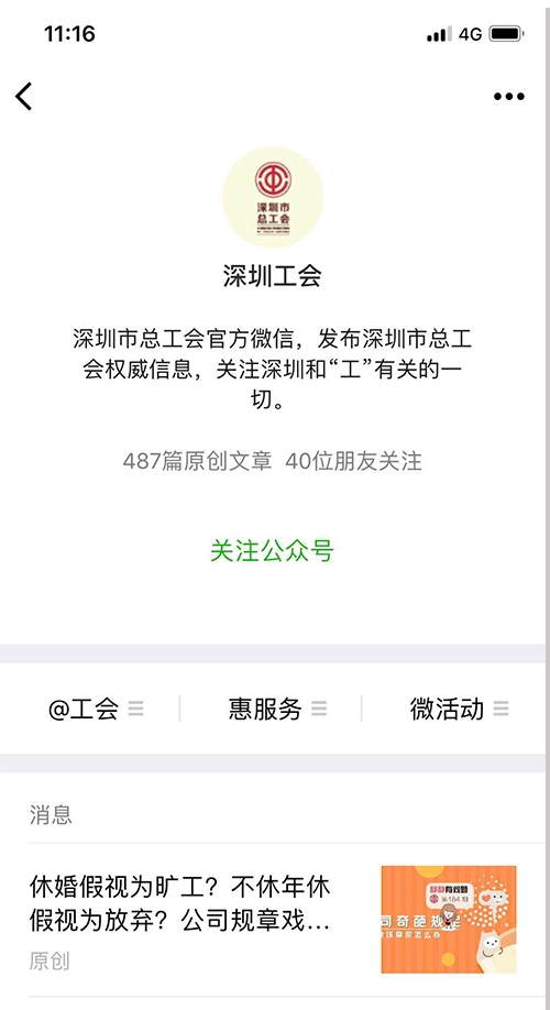 案例介绍:“深圳工会”是深圳市总工会官方自媒体,2015年上线,目前用户数20万。致力于打造集“工会发声平台”“工会工作者掌上宝典”“指尖上的职工之家”为一体的新媒体平台。坚持以职工为中心,体现工会特色,运用“互联网+工会”思维,遵循新媒体传播规律,突出公益性、服务性,采取社会化运营方式,整合资源,与知名媒体联动,注重实用性和互动性。适应职工需求,开展丰富的线上线下活动,活动参与人次达500万。作为深圳工会新媒体的龙头,积极提供业务指导和技术支撑,形成覆盖百万职工的工会新媒体矩阵。