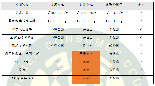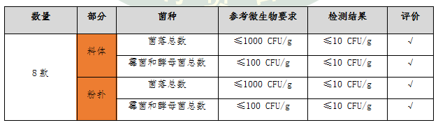 欧盟对化妆品中微生物要求更加严格,国标要求5项,欧标要求9项。检测结果显示:8款气垫粉底微生物检测结果不仅符合国家标准要求,而且符合欧盟法规要求。