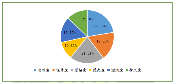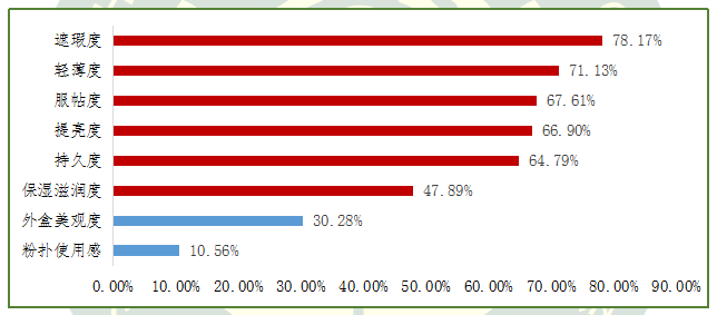图6.关注气垫粉底使用性能指标的消费者人数占比