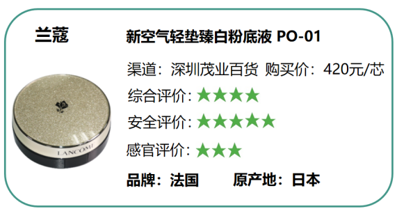 (一)本次比较试验从消费者角度出发,参考国标、欧盟(包含德国)、美国以及日本等国家和地区的标准对气垫粉底进行测评,旨在为消费者筛选出达到国际一流标准的高品质产品。