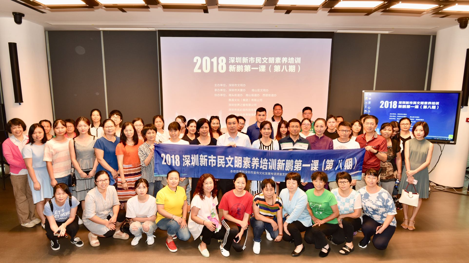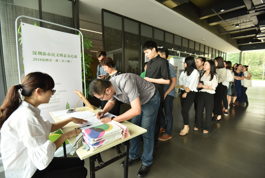 人们常说,最美的风景是人。一座城市要想赢得尊重,不仅仅在于其创造的经济价值,更在于其高尚的人文精神。2018年8月21日下午,来自南头街道办、南山街道办、西丽街道办、雅昌文化(集团)有限公司、深圳世界之窗有限公司、深圳市优必选科技有限公司、深圳市社会体育指导员协会的两百名新市民代表在深圳人才公园参加2018深圳新市民文明素养培训“新鹏第一课”第八期活动。