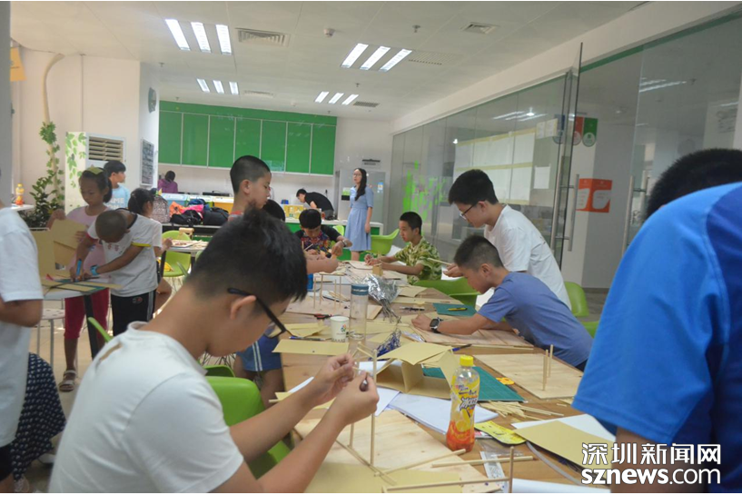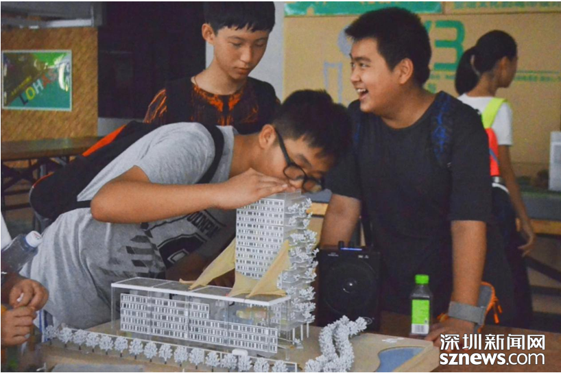 7月27的建筑设计工作坊不仅得到了此前参与设计东江源环境教育中心的设计师支持,还邀请到了热心建筑文化科普的青年建筑设计师Louis分享建筑历史文化和人文特色,赣南建筑的基本特点,建筑设计的基本原理,以及东江源环境教育中心的设计和建造过程,引导小伙伴们成为“小小设计师”,亲手构建建筑模型,在动手过程中思考建筑、艺术、科学、自然与生活之间的关系。第二天上午,学员们前往深圳福田上梅林社区的黄氏宗祠参观,感受到了城市中的传统与人文,宗族文化与社区生活,了解悠悠岁月中家族故事。之后来到10年前就建造落成的建科院大楼,在这座“绿色建筑科普教育基地”,了解新型建筑在环保建材应用、采光通风设计、屋顶墙体绿化、太阳能利用、雨水回收和污水处理等方面的绿色建筑技术,以及如何在日常生活中践行绿色环保理念。
