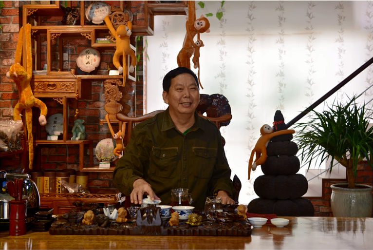 魁梧身躯内藏着一颗顽童的心,风趣、幽默。因生肖属猴并经常流连于云南各大茶山寻觅古树普洱茶,自诩“猴子”,一生为“茶痴”。彭建秋从事古树普洱茶研究推广几十年,把自己的青春奉献给了云南,把自己的茶品奉献给了大家,深谙茶经茶道,门下弟子数百人,茶客无数,传承普洱茶艺。对古树普洱茶文化的推广及古树普洱茶保育发展鞠躬尽瘁,实乃大师的风范。