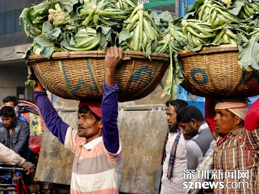深圳新闻网2019年1月8日讯 在孟加拉,无论城市,还是乡下,人们头顶重物的情景,确实是无处不在的。李仁奇摄