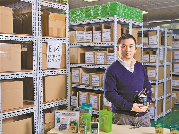 我在大学甚至更早的时候就深有体会——我有很多想法,但是缺乏必要的技术去把这个想法实现出来。我在国外的一个开源硬件论坛留言说我的体会,没想到有那么多创客回馈说有同感,论坛上创客们的积极回应让我看到了商机。我发现,很多硬件模块因为创客需要的量少,很多工厂不愿意生产。后来,我想到了在国际创客论坛发帖征集创客们的需求,再到国内电子市场搜集硬件加工后发给创客的点子。于是,我便做起了开源硬件的生意。“为创客服务”,这是我创业的最初目标。