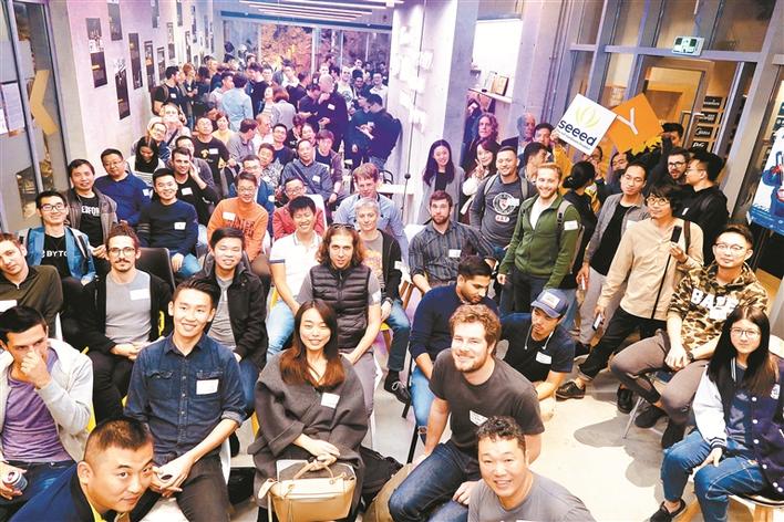 ▲2018年12月,硅谷著名创业孵化器Y Combinator成员到访柴火创客空间,潘昊(前排左一)在柴火创客空间发起社区分享活动。