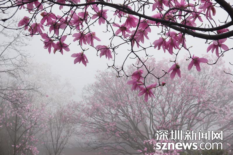 雨雾濛濛之中观赏盛开的辛夷花,宛若置身仙境......李仁奇 摄