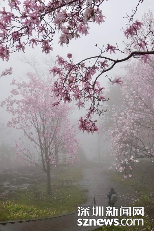 北川药王谷,雨雾濛濛之中观赏盛开的辛夷花,宛若置身仙境......李仁奇 摄