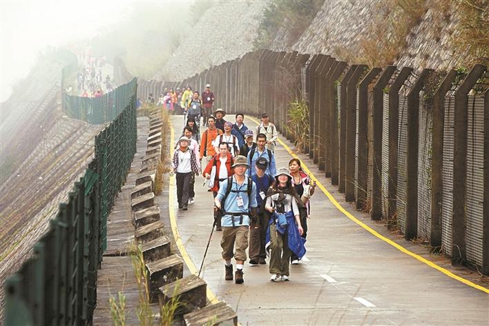 ▲参加深圳百公里活动的市民在徒步中。