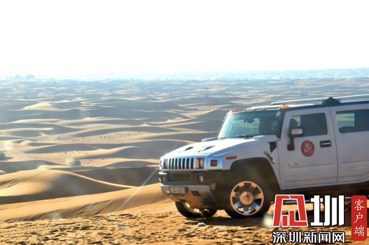 去迪拜,一个最不可错过的体验项目就是"冲沙"。所谓冲沙,就是高速的车在沙丘里不断爬坡、俯冲、腾飞、落下等等一系列惊险的动作。李仁奇摄