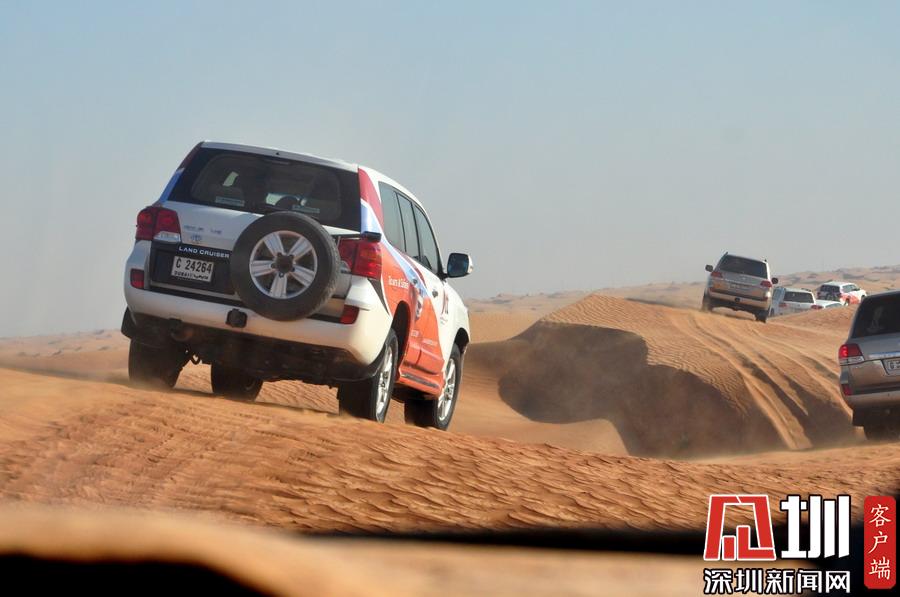 乘坐兰德酷路泽(陆地巡洋舰)越野车,在连绵起伏的沙丘上驰骋,不乏刺激但并不惊险。李仁奇摄