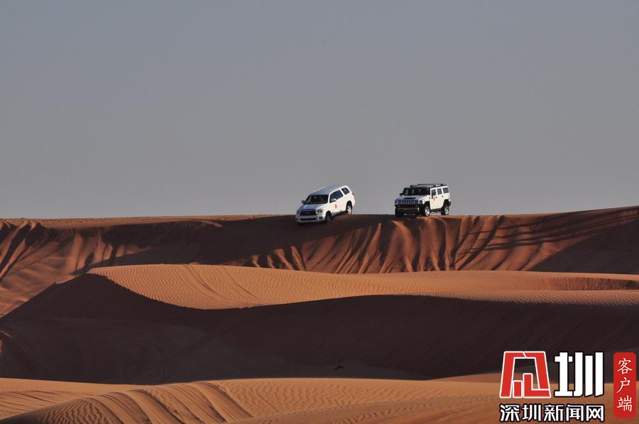 随着越野车内的惊声尖叫,驾驶员已加大油门冲上前方的沙丘,高度不断增加,坡度也越来越大,有时会达到六七十度,就在感觉车几乎要翻的时候,突然整个身体失重,随着阵阵尖叫,每个人都紧紧抓死把手,当你落到座位上坐稳时,才反应过来越野车已从很高的沙丘上俯冲了下来!李仁奇摄