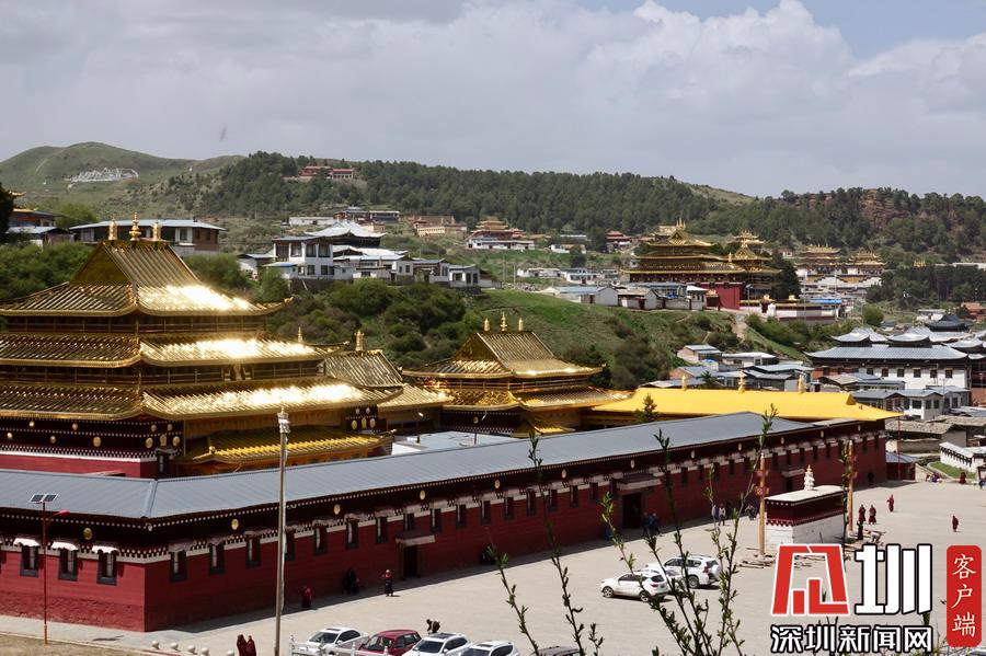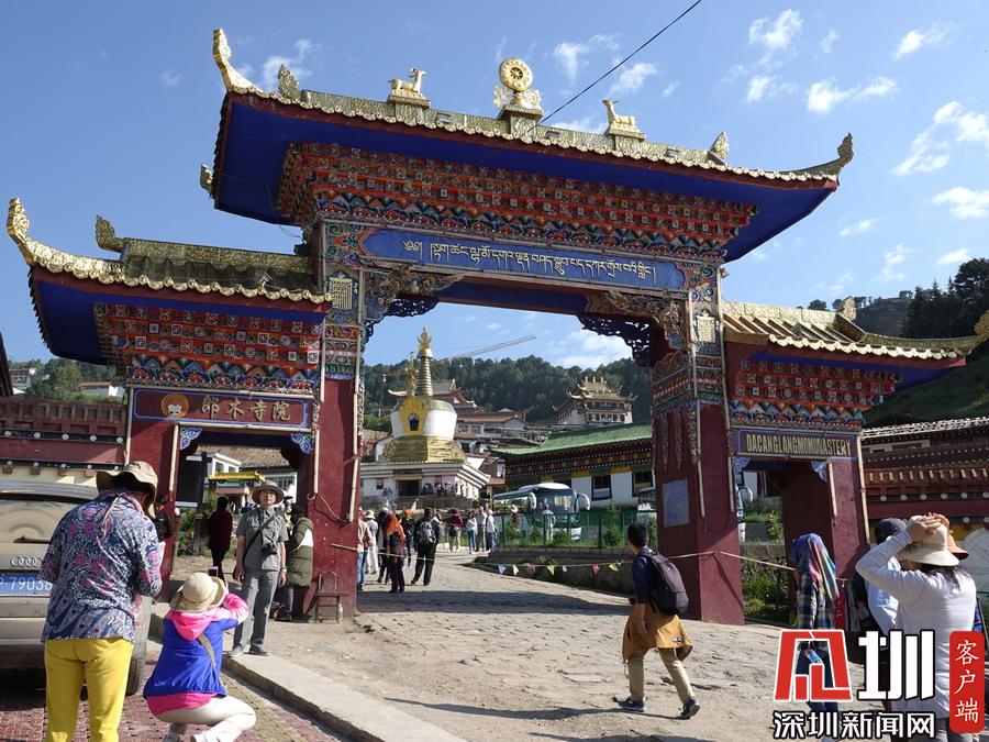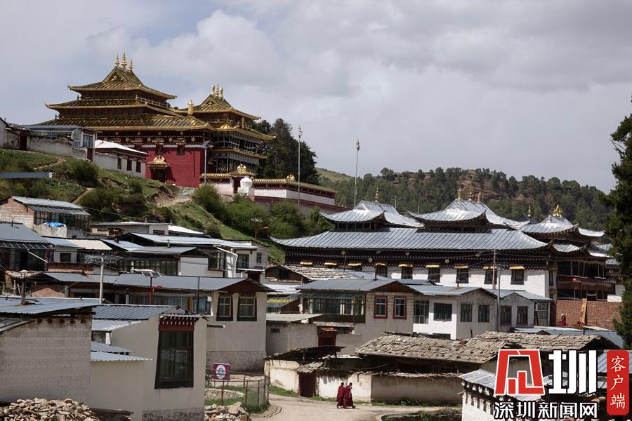 镇内的主要街道分属两省管辖。南北两端,几百米之内,有两座壮观宏大的寺院建筑群隔“江”(白龙江源流)相望,甘肃境内是“赛赤寺”。四川境内有“格尔底寺”。李仁奇摄