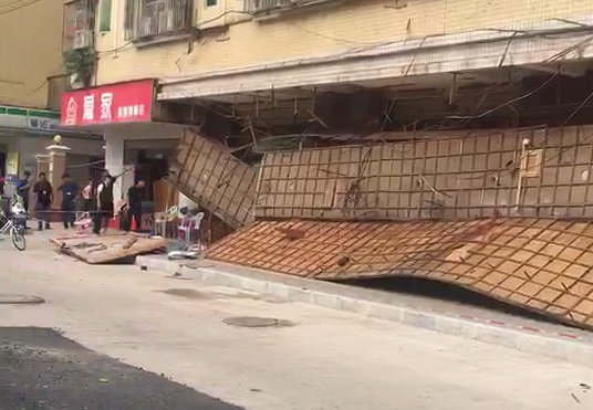 观澜东升小区旁一商铺招牌塌落有人被困?回应:现场无人员被困且无伤亡