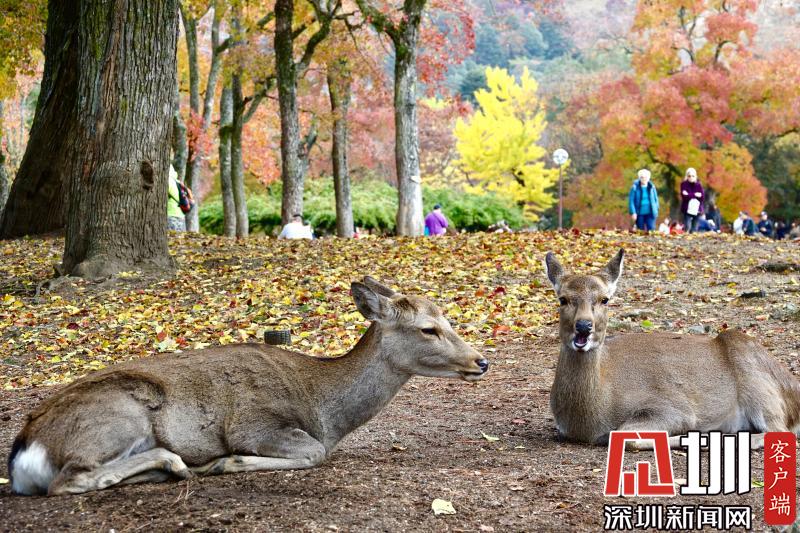 游览神鹿公园喂饲驯鹿,是奈良观光的象征性选择。这里一年四季都游人如织,秋日红叶映衬下的景观更是情趣盎然。李仁奇摄