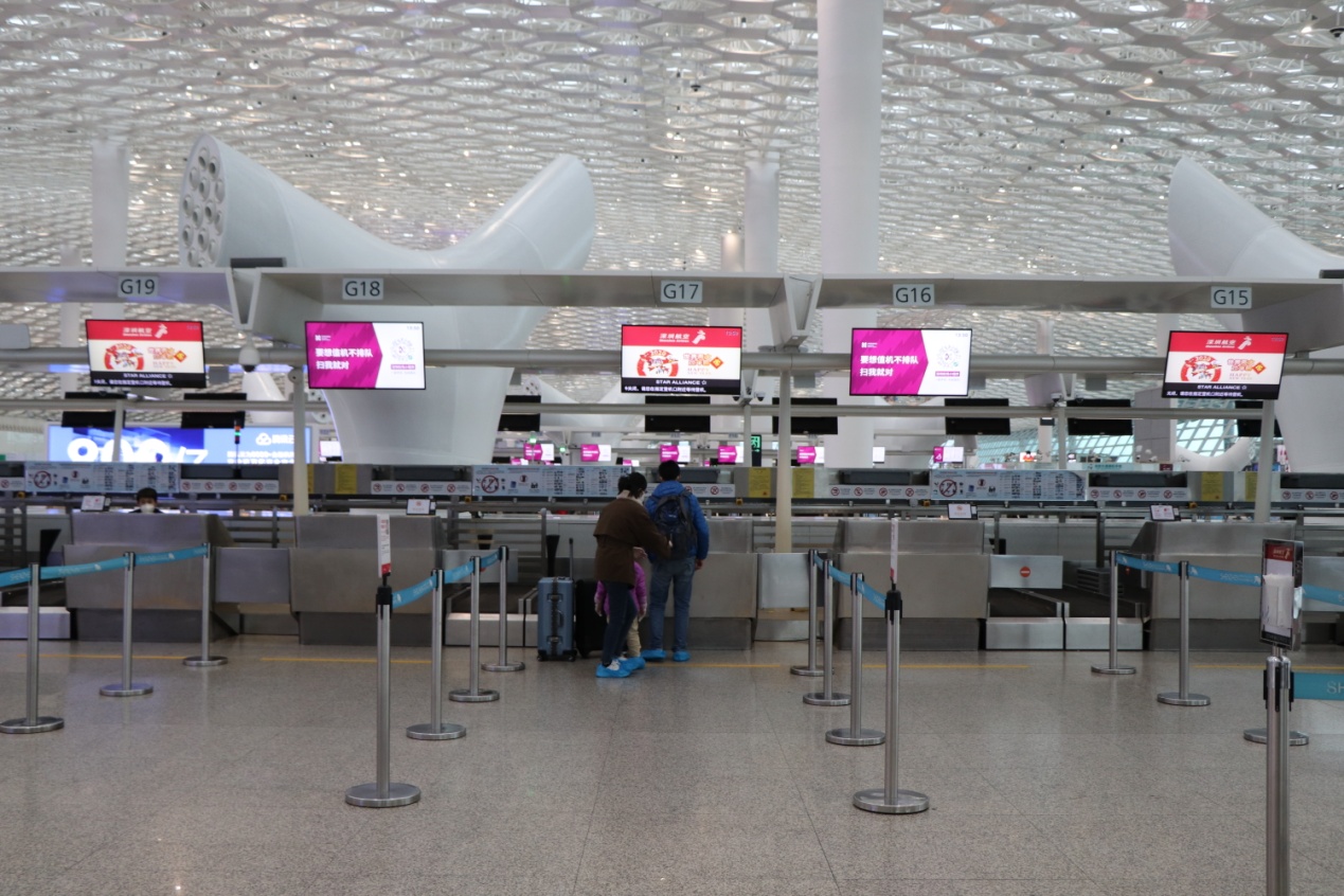疫情期间,深航地面服务部值机环节实行间隔开放,提供安全值机物理环境,减少旅客交叉接触。