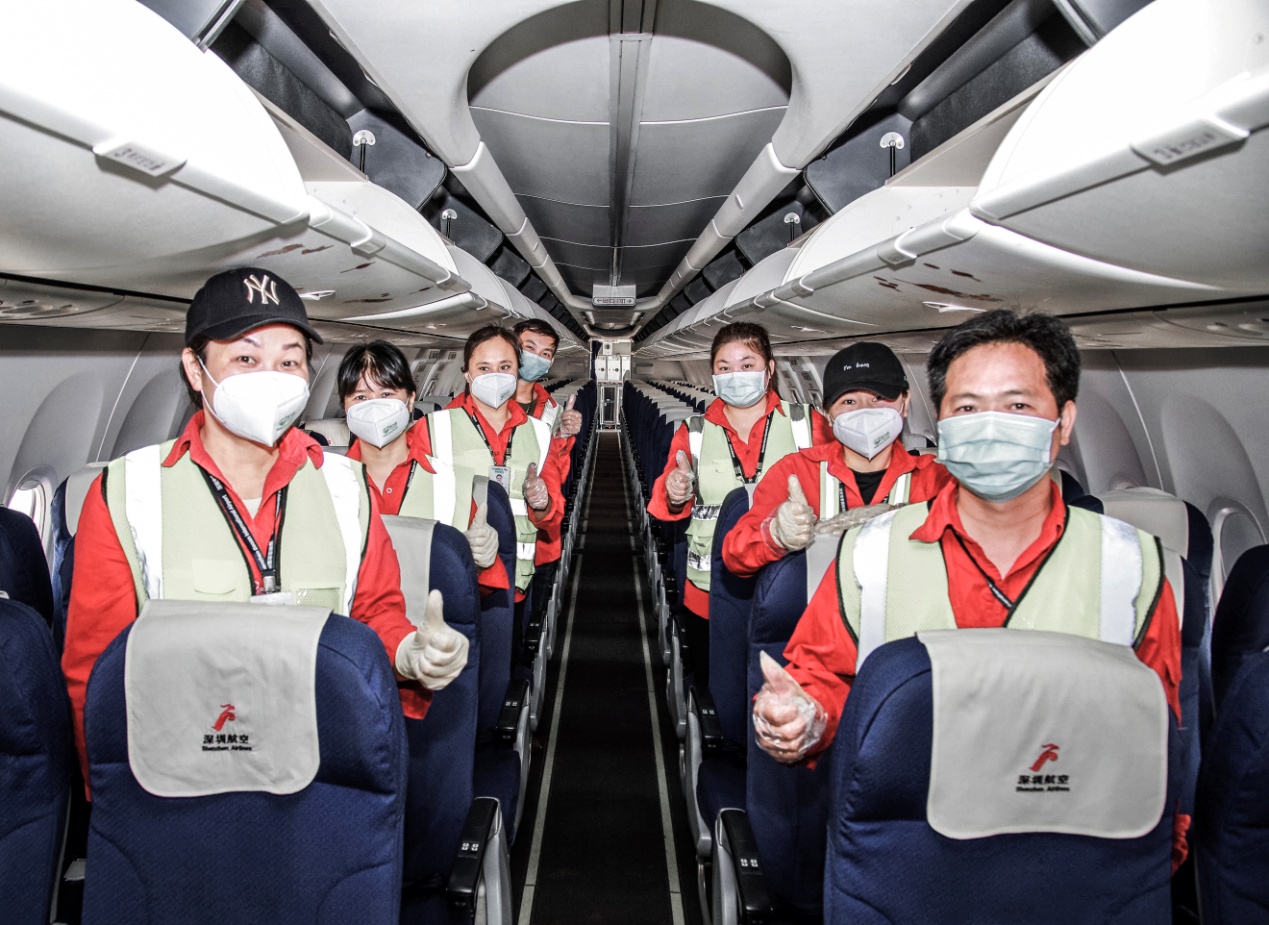 隔离病毒,不隔离爱。深航地面服务部客舱清洁环节,面对疫情责无旁贷,坚守岗位第一线。
