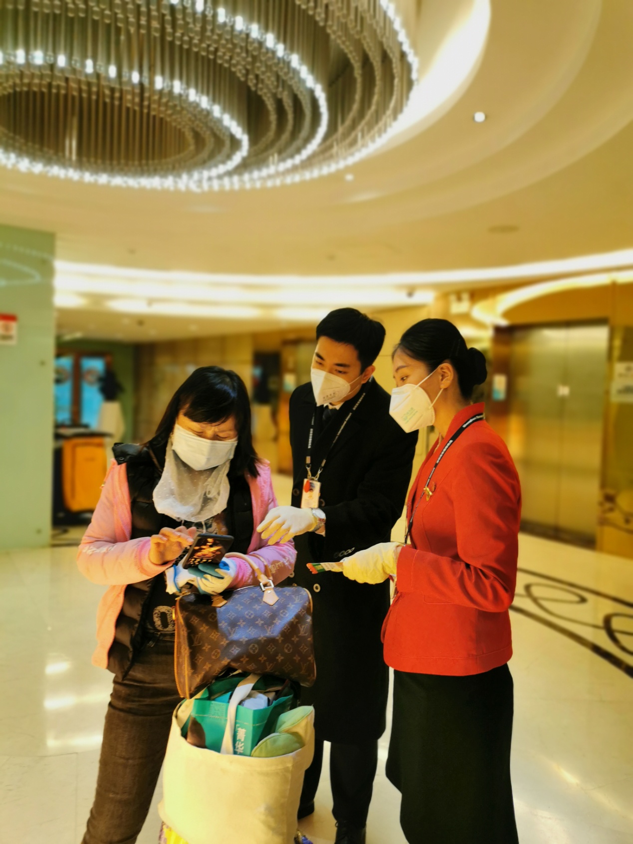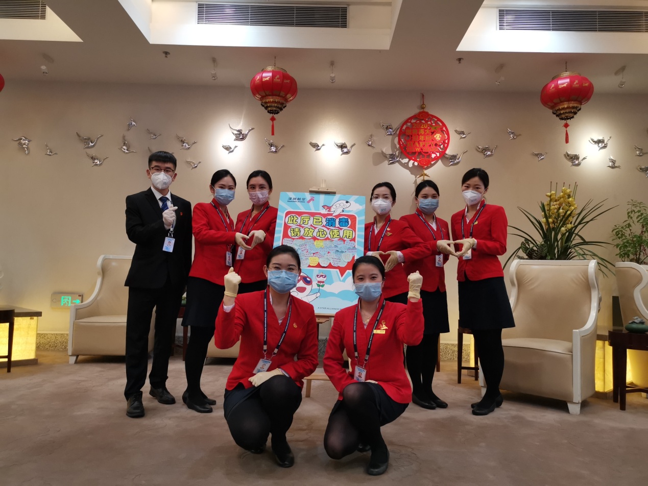 深航地面服务部贵宾服务环节对上岗员工配发口罩、手套,上岗前测量并记录,对客工作区域也定期定时消毒,确保安全。