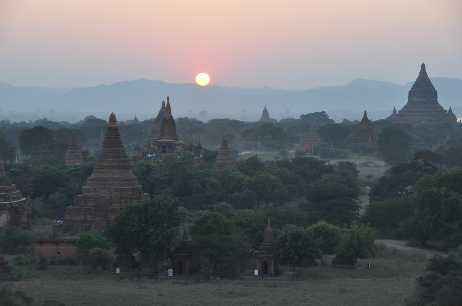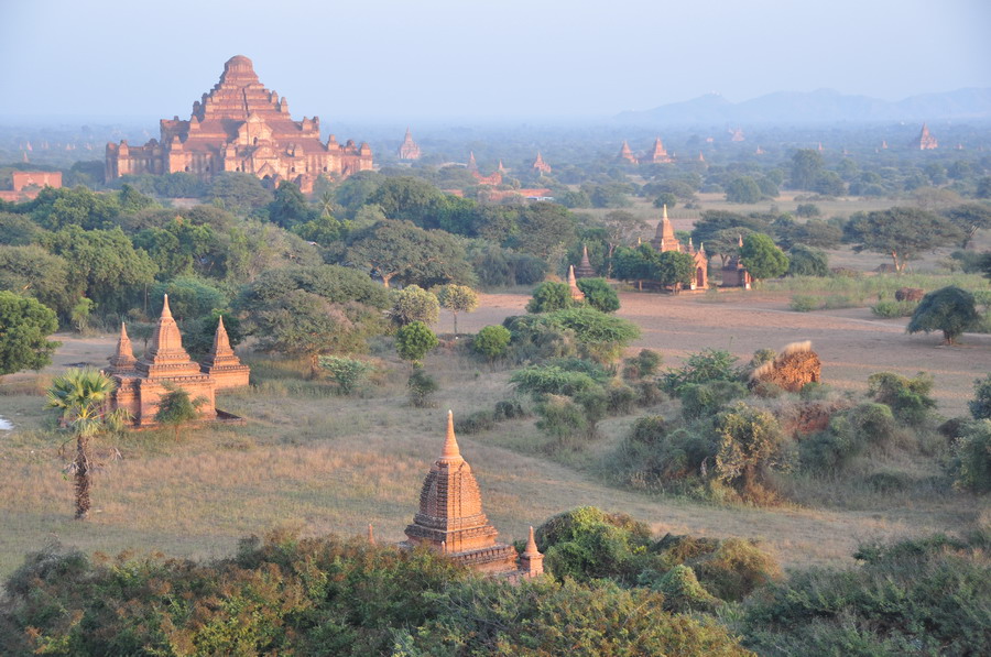 在蒲甘游览,见不到想象中的古城和街道,原来整个塔林散布的40平方公里范围内都是“古城”,城里没有一座超过三层的楼房,映入眼帘的都是星罗棋布的古塔。李仁奇摄