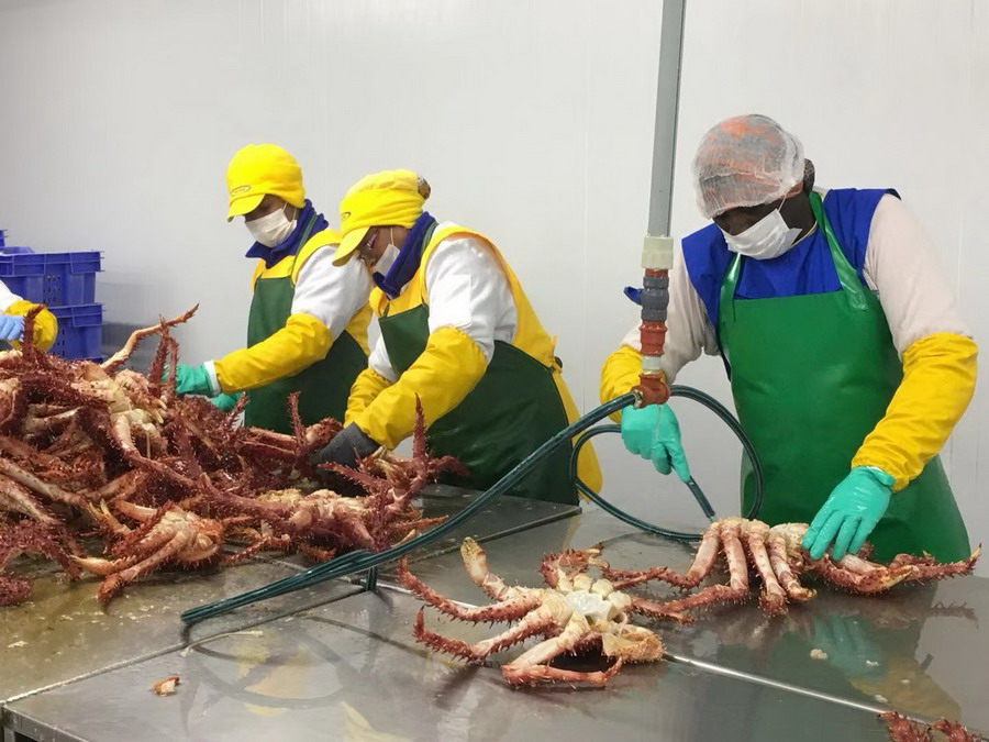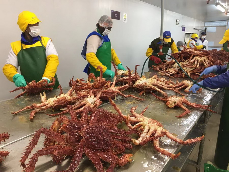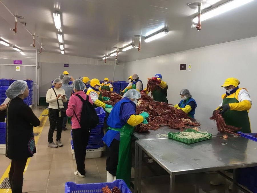 智利蜘蛛蟹加工基地。李仁奇摄