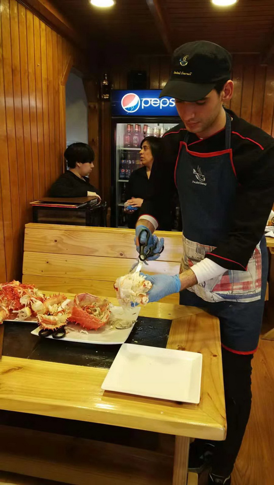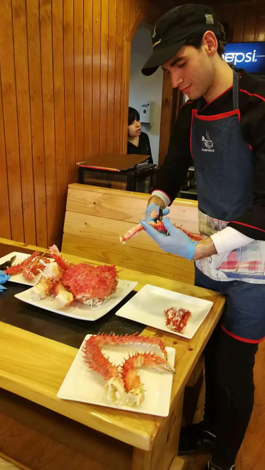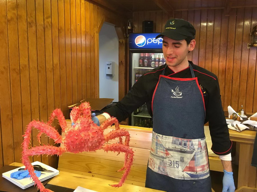 当地服务生加工蜘蛛蟹。李仁奇摄