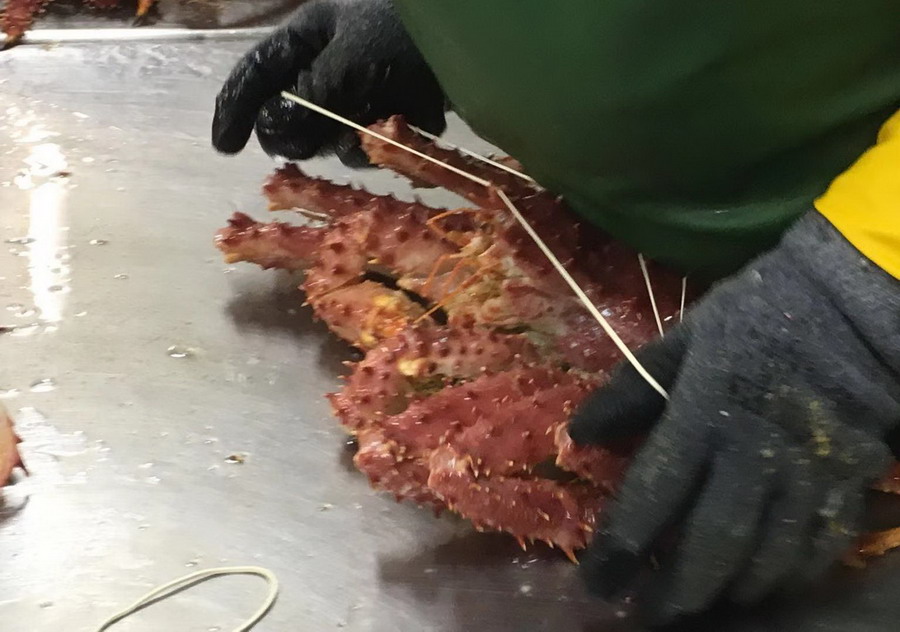 网友在蜘蛛蟹加工基地。汤有国摄