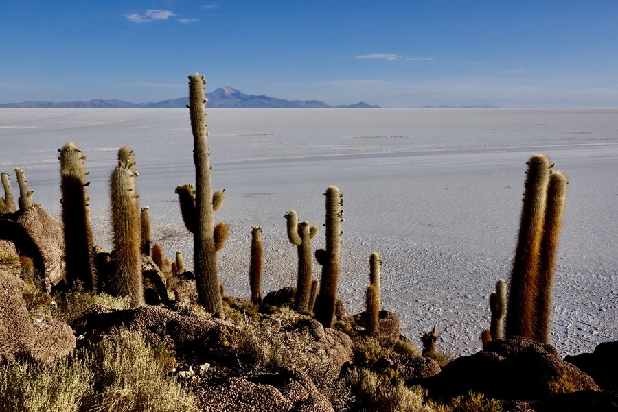 玻利维亚西南部的乌尤尼小镇,传说是在安地斯山脉隆起过程中所形成的,东西长约250公里,南北宽约100公里,面积达10582平方公里,为世界最大的盐沼,盛产岩盐与石膏。李仁奇摄