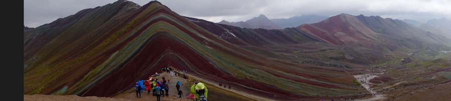 彩虹山位于库斯科古城外100多公里的安第斯山脉深处,顶峰海拔超过5200米。因山坡蕴含不同的矿物质,形成美丽的七彩,故被作彩虹山。这处神奇的丹霞地貌,多年来一直被冰雪覆盖,直到2016年才被探险家发现,迅速成为秘鲁旅行新近热门景区。李仁奇摄