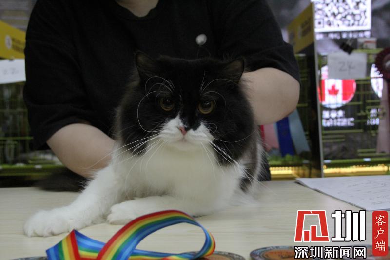 裁判正在向观众展示参赛猫咪。