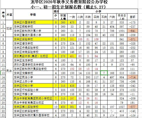 龙华区公办学校小一、初一计划报名数(市民供图)