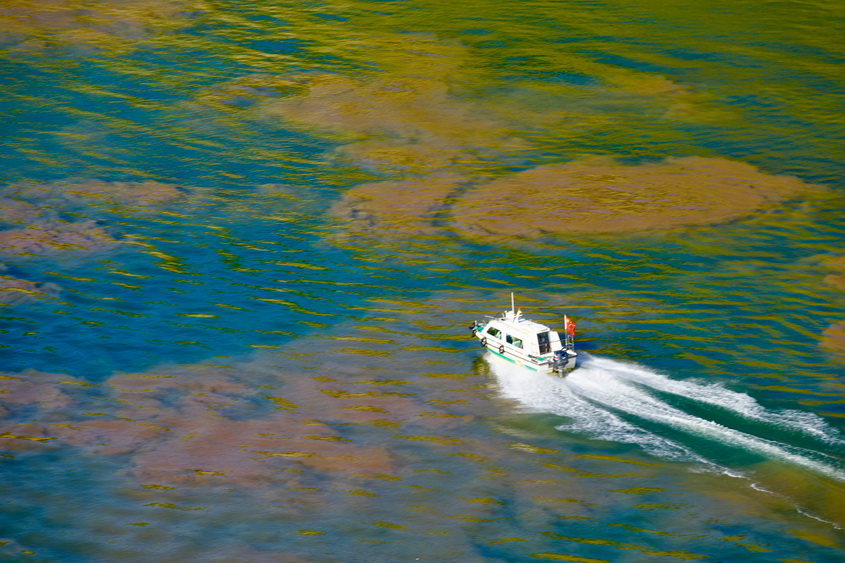 洮河黄河汇流处清浊分明的水面和电站排洪的壮观景象具有独特的观赏价值。李仁奇摄