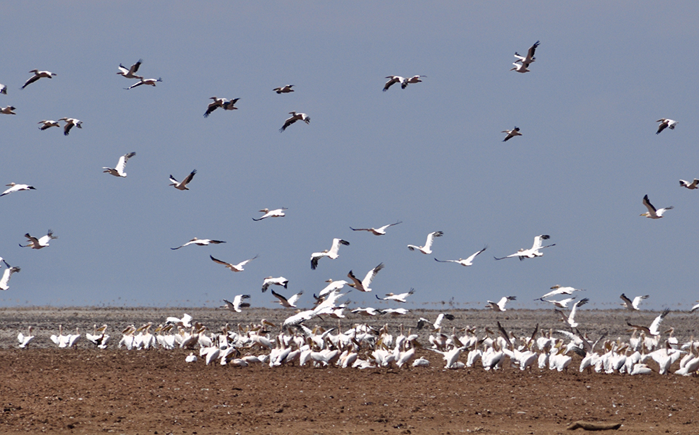 每年不同时期,红鹤、鹈鹕、鸬鹚、火烈鸟等大型鸟类云集湖区,绵延数公里,十分壮观。李仁奇 摄