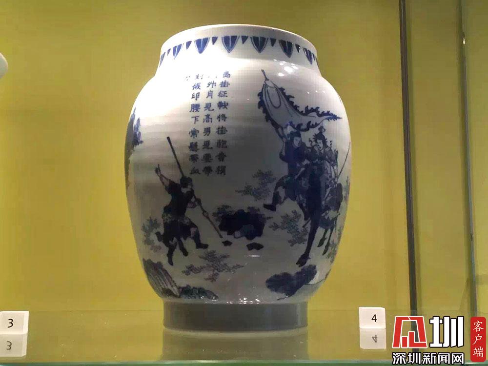 一件青花瓷瓶上有如下配图诗文:“马褂征鞍将褂袍,柳梢门外月儿高;男儿要带封侯印,腰下常悬带血刀。”