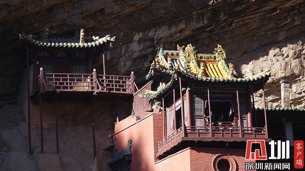 悬空寺建成于公元491年,是佛、道、儒三教合一的独特寺庙。李仁奇摄。