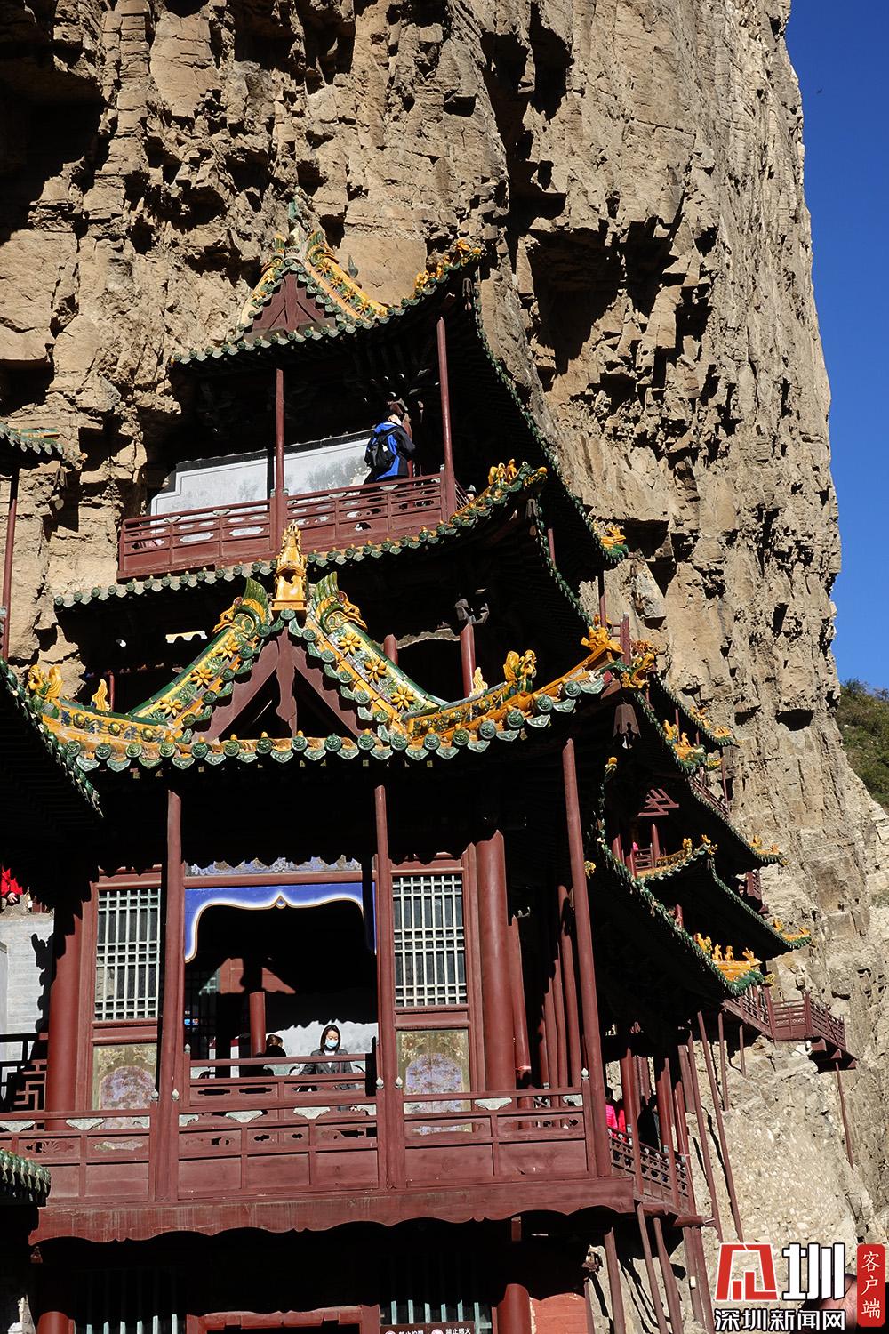 其建筑以临渊而建、精巧险峻著称。当地有“悬空寺,半天高,三根马尾空中吊”的俚语。李仁奇摄。