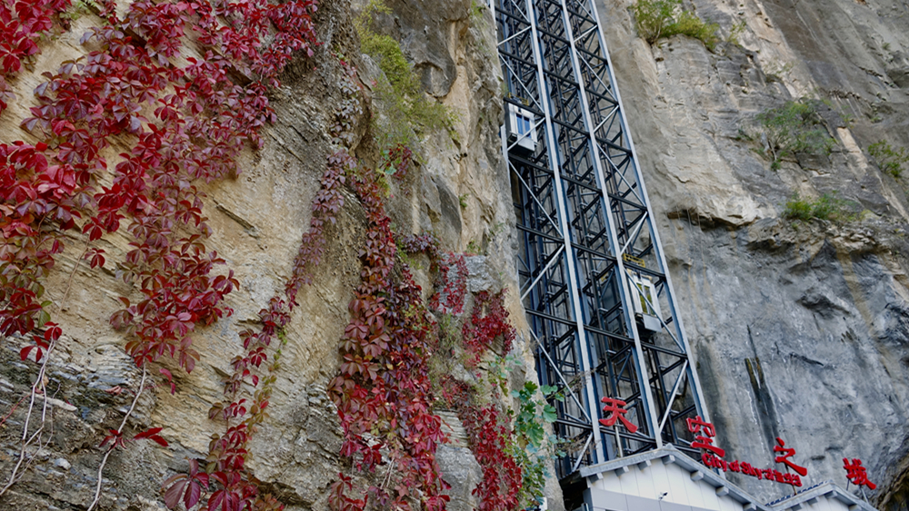 图为百丈悬崖露天电梯。李仁奇 摄