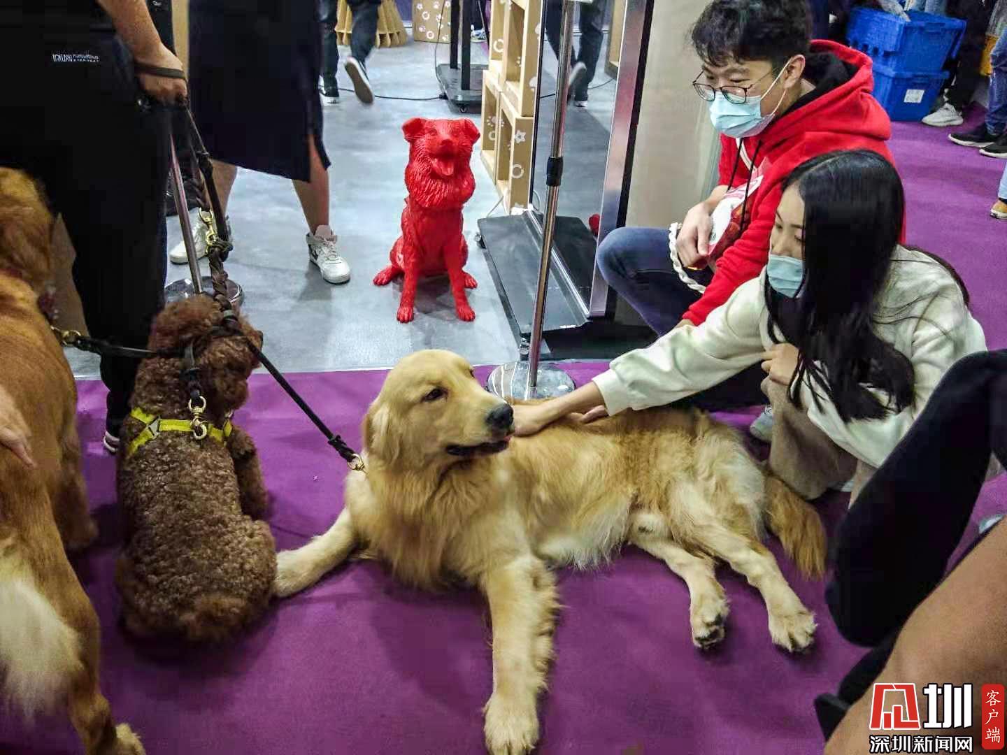 观众带来的宠物犬大部分性格都很好,可以和其他逛展的观众友好互动。
