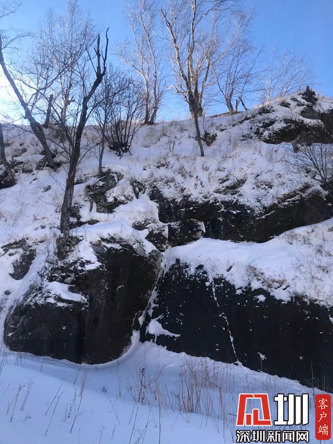 积雪厚厚的落了一层,覆盖在黑色岩石上。
