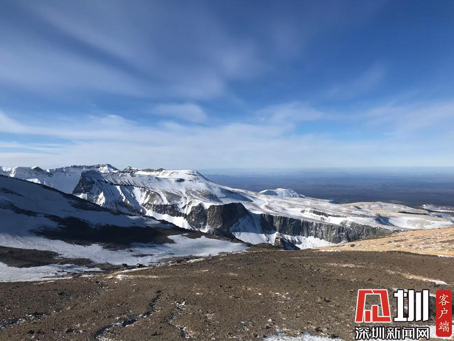 在天池上,温度可达-30度,在山顶上面刮风的时候,手机等电子设备容易被冻关机。站在山顶上,眺望远处的巍巍雄山,感觉到开阔之意。主峰长白山多白色浮石与积雪而得名,素有“千年积雪万年松,直上人间第一峰”的美誉。