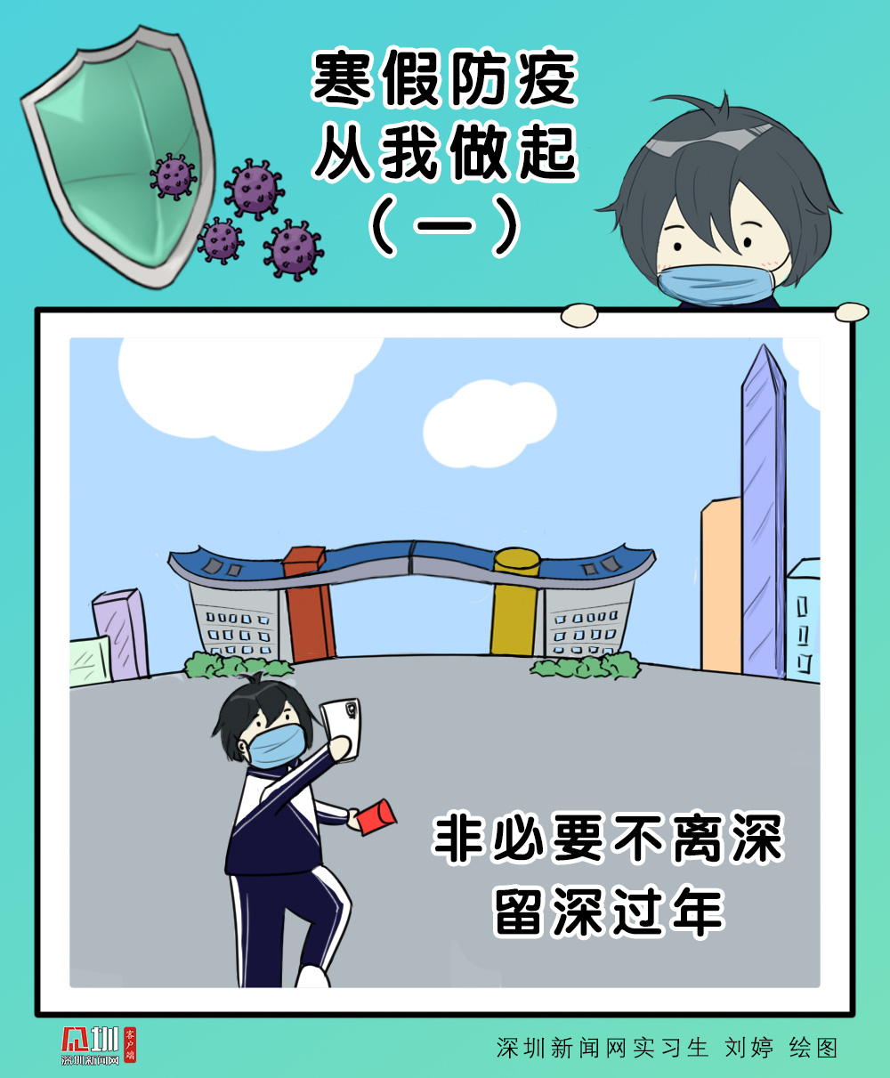 寒假来临,春节将至,全国疫情防控任务依然艰巨,为确保全市师生度过一个安全健康、欢乐祥和的春节假期,我们推出漫画《寒假防疫 从我做起》,呼吁广大师生不远行、不聚集、一起留深过年!