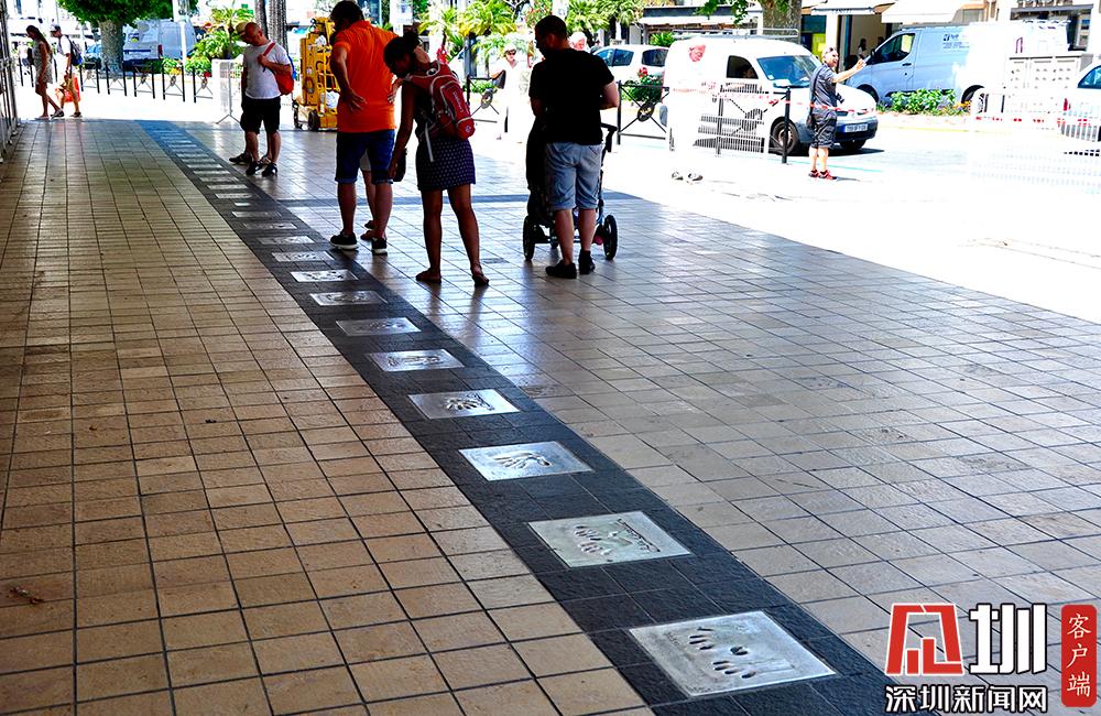 图为游人正在参观留下的名人掌印。李仁奇 摄