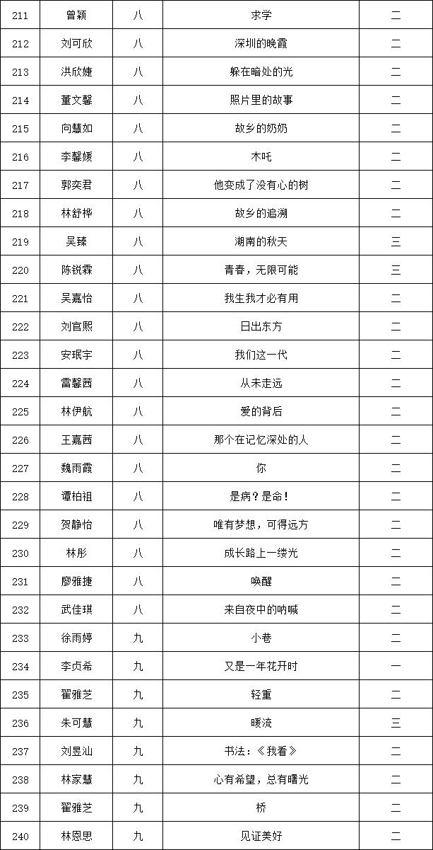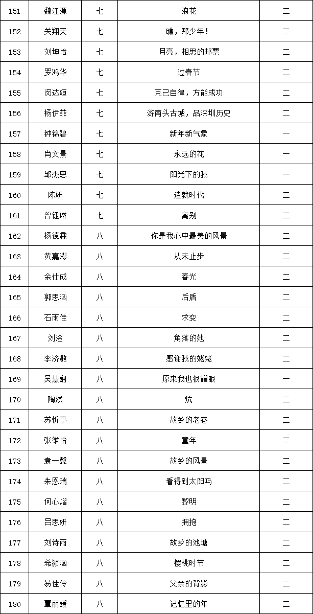 自2021年1月,活动征稿启动以来,获得了深圳市广大中小学生、教师、文学爱好者的热烈响应积极参与,吸引了深圳百余所学校的上万人关注报名。现公布龙华区外国语学校专场晋级复赛名单如下: