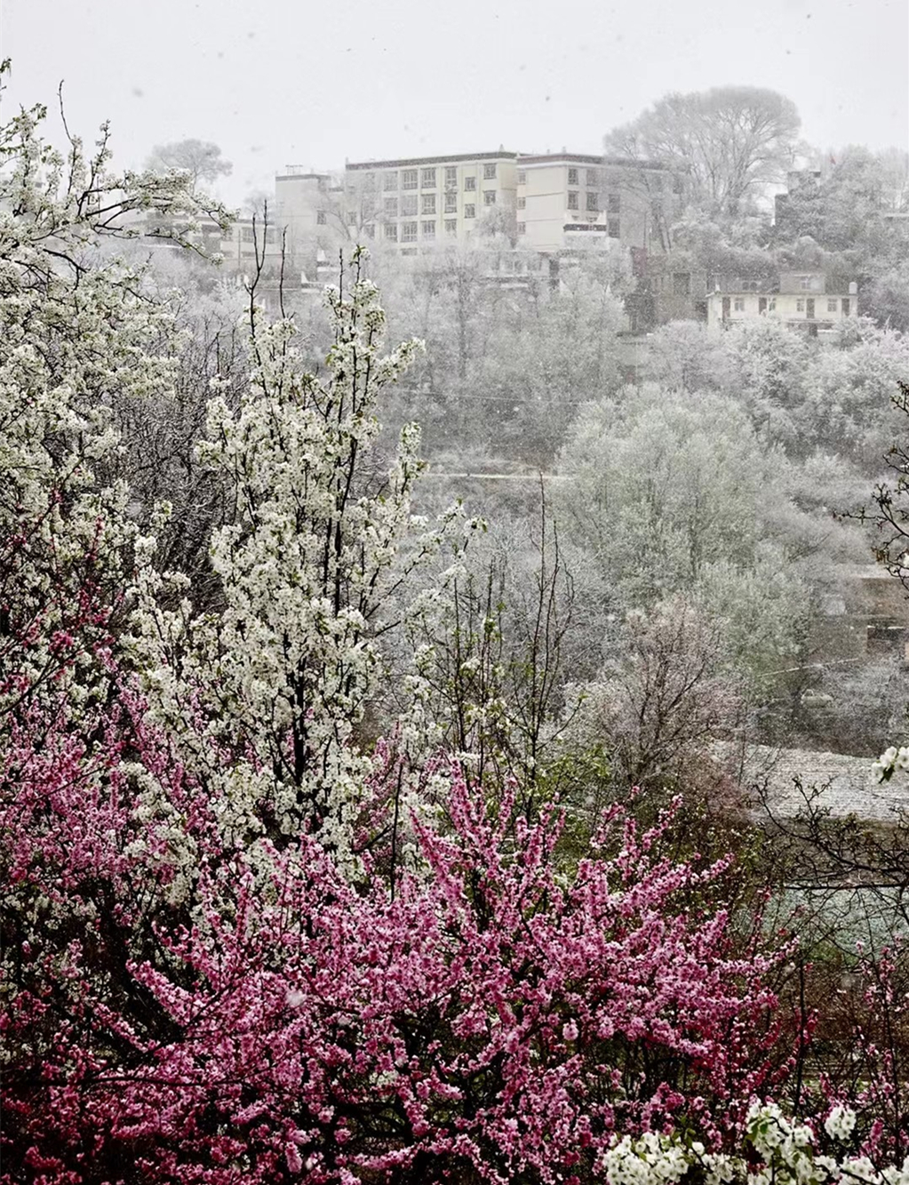 藏式民居与雪花梨花桃花相互掩映,美若仙境。李仁奇 摄