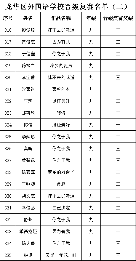 自2021年1月,活动征稿启动以来,获得了深圳市广大中小学生、教师、文学爱好者的热烈响应积极参与,吸引了深圳百余所学校的上万人关注报名。现公布龙华区外国语学校专场晋级复赛名单如下: