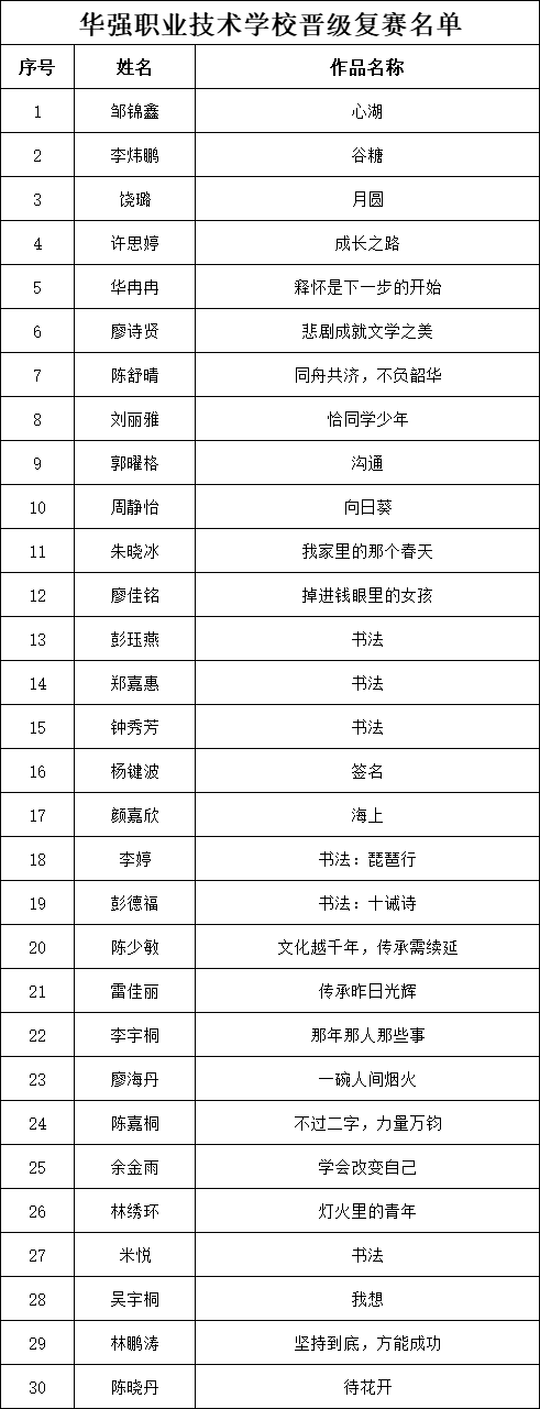 自2021年1月,活动征稿启动以来,获得了深圳市广大中小学生、教师、文学爱好者的热烈响应积极参与,吸引了深圳百余所学校的上万人关注报名。现公布福田区华强职业技术学校专场晋级复赛名单如下: