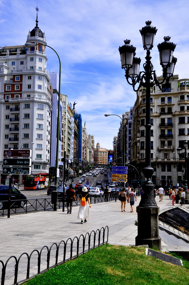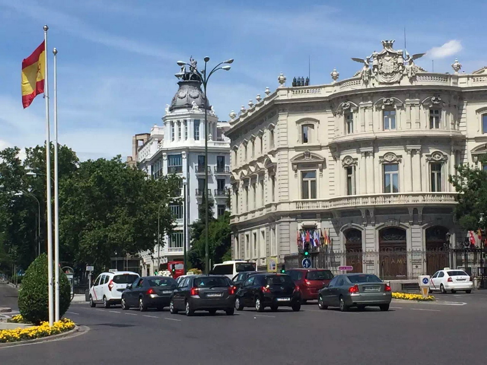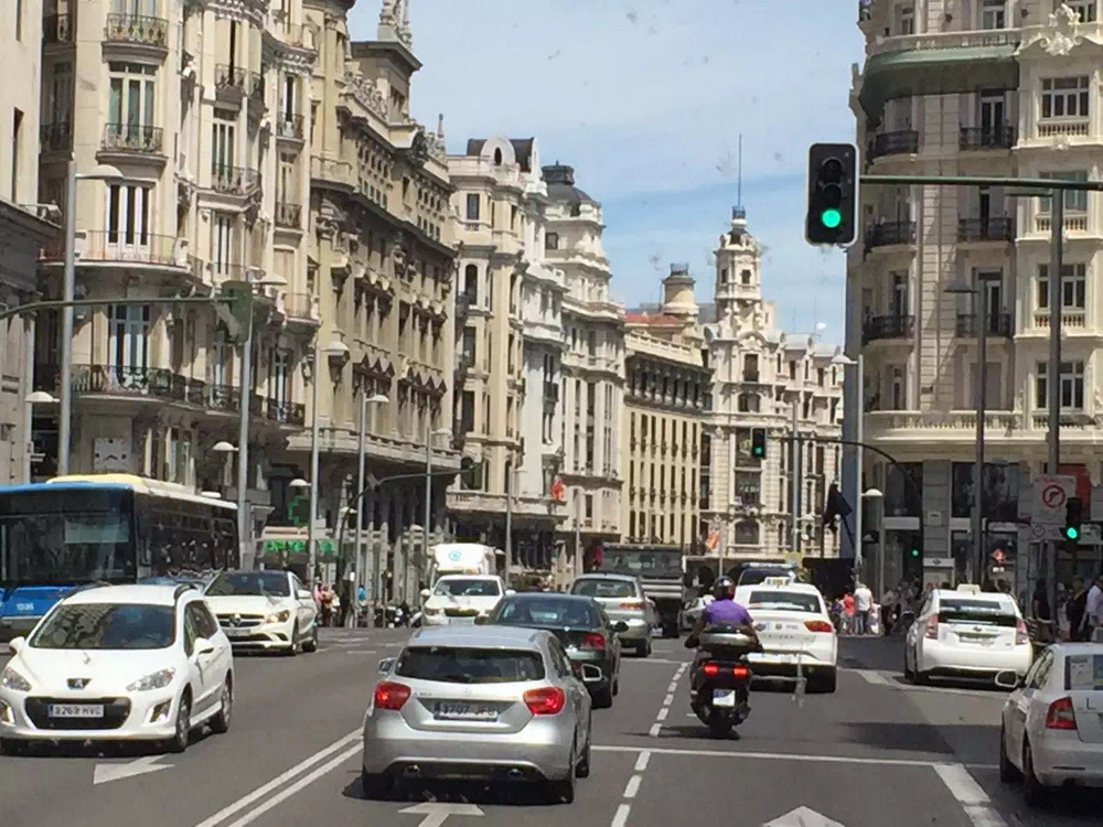 马德里不像巴塞罗那那样拥挤热闹,街道宽阔、建筑漂亮、市容整洁、绿树成荫。街道马路上行人车辆都较少。李仁奇 摄