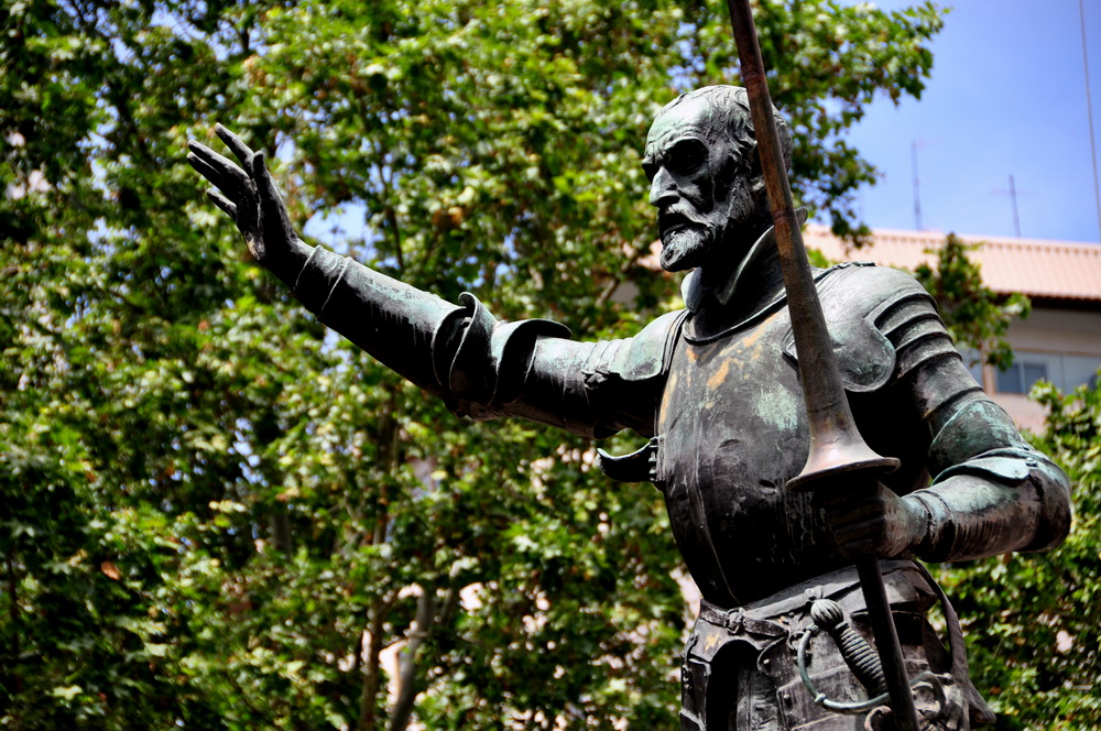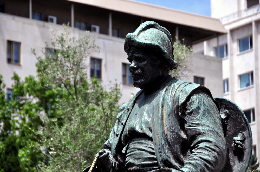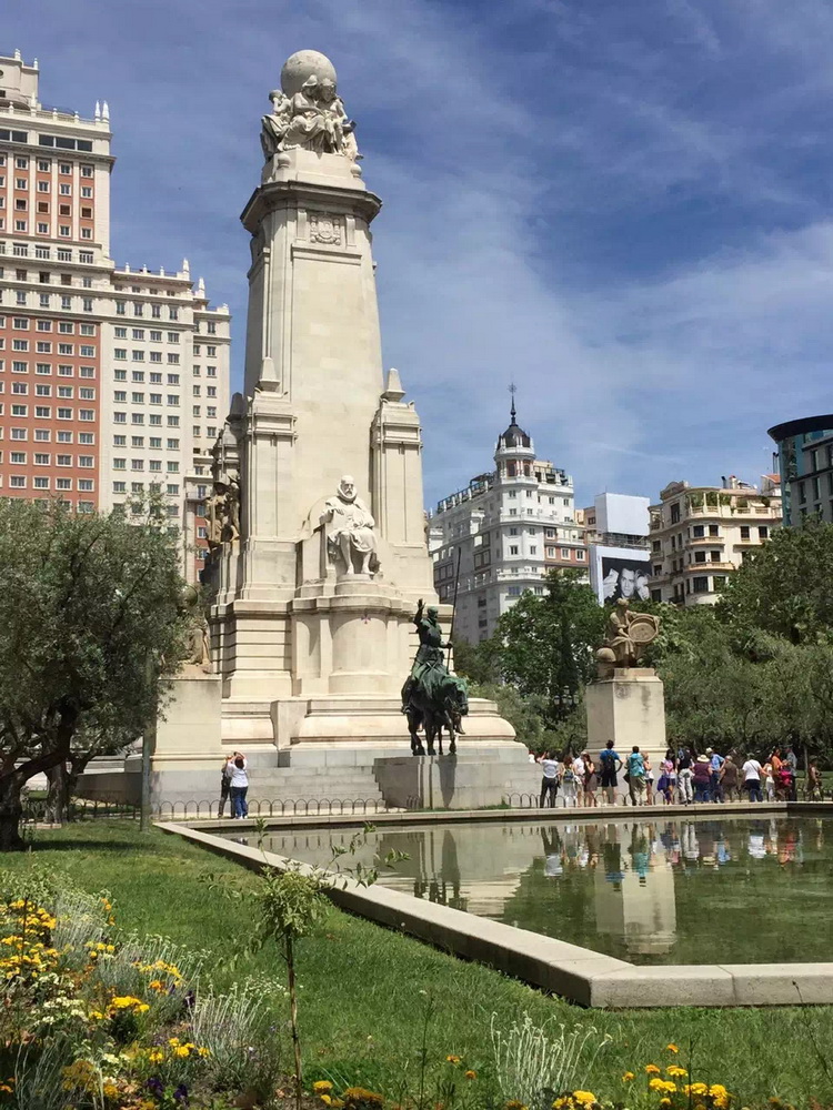 马德里是一个艺术之都,文艺复兴时期西班牙最伟大的作家塞万提斯及其小说人物堂吉柯德和仆人桑丘的塑像位于市区中心,是世界各国游客的打卡之地。李仁奇 摄